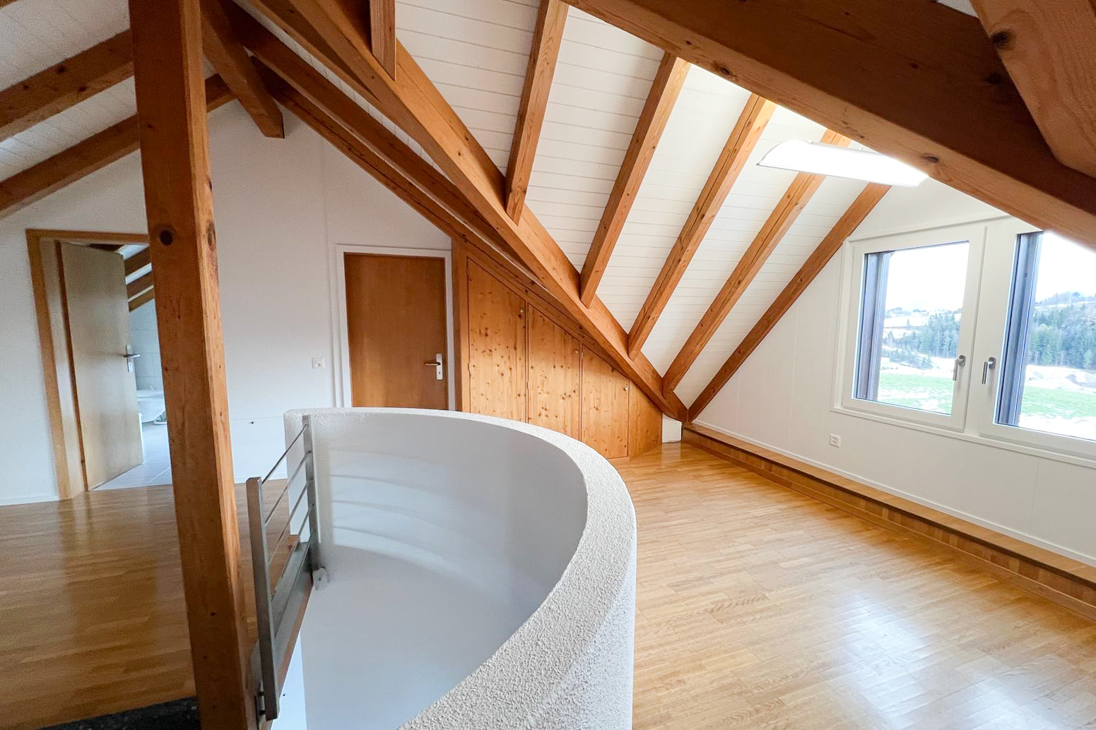 Heute bringt das helle Täfer spürbar Ruhe und Leichtigkeit in die Räume.