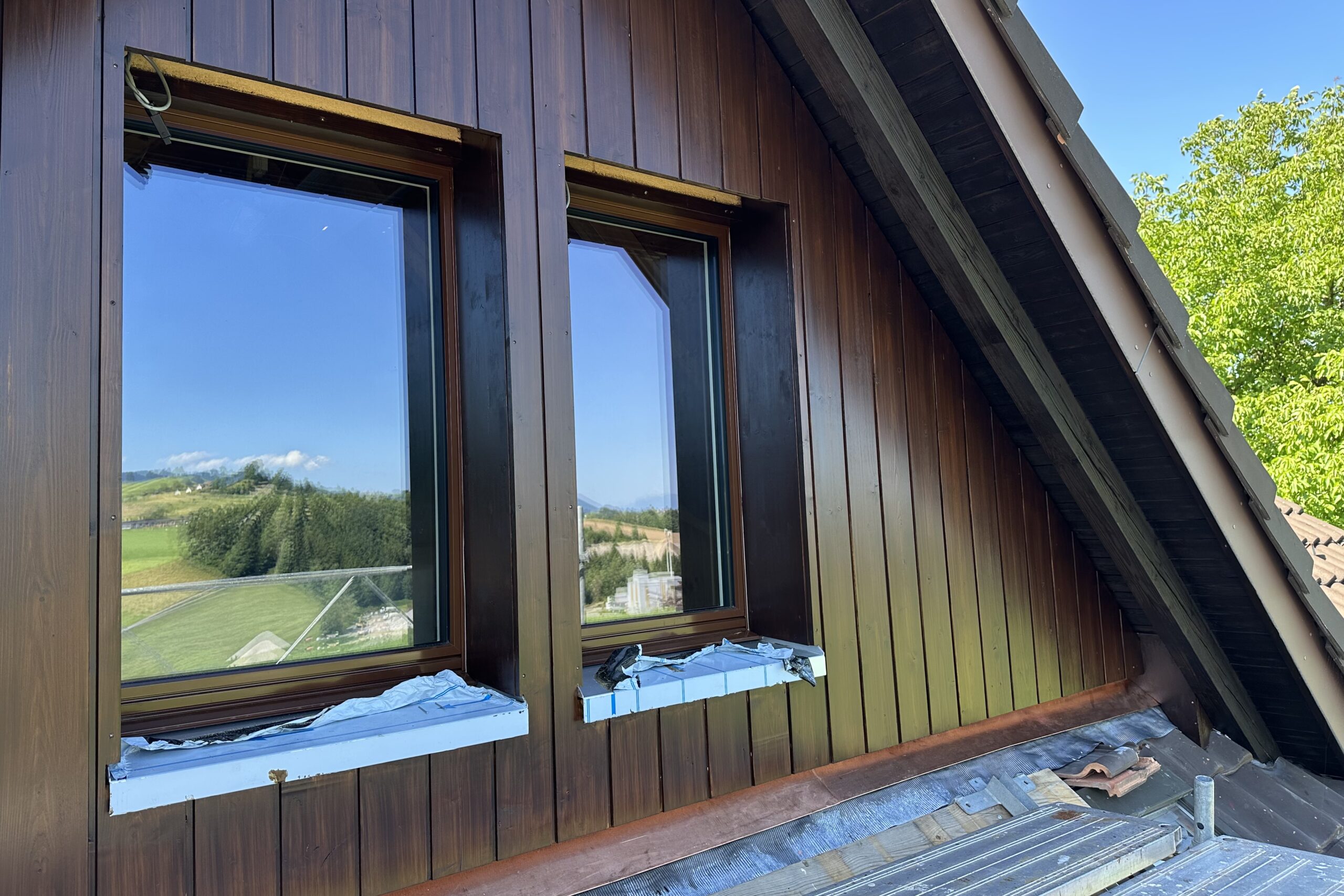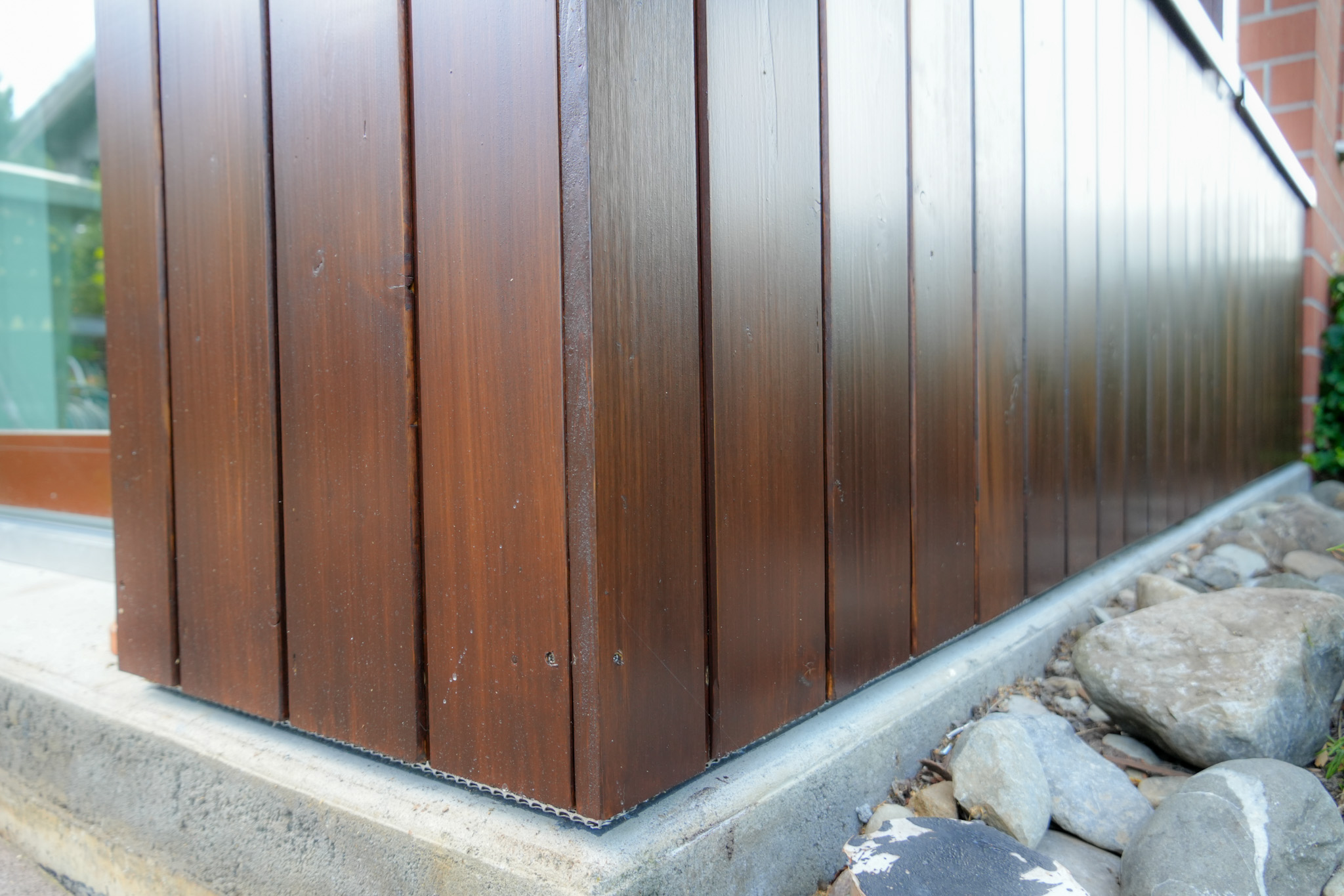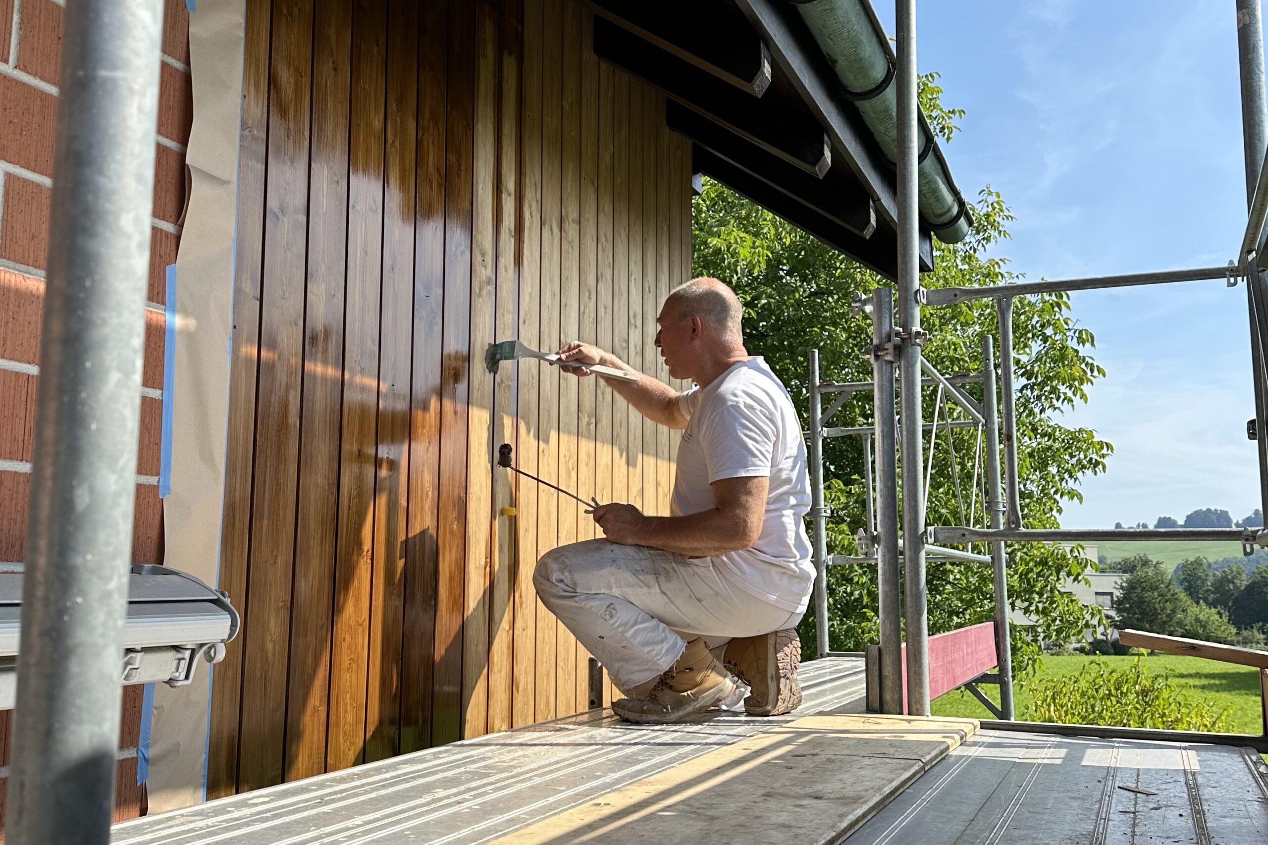 Neue, werkseitig grundierte Holzverkleidungen wurden fachgerecht montiert und von uns doppelt oberflächenbehandelt – für optimalen Witterungsschutz und eine attraktive Optik.