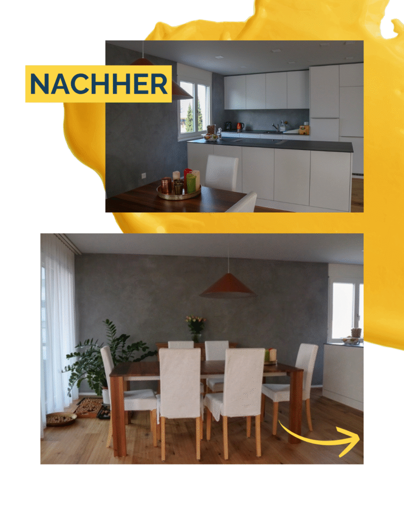 Was das Material besonders macht: Es wird in der Schweiz aus Zement und feinem Quarzsand hergestellt und von Hand appliziert. Die individuelle Verarbeitung verleiht jeder Fläche ihre ganz eigene Handschrift – dezent, lebendig, zeitlos schön.