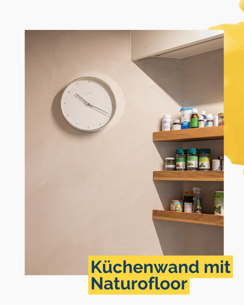 Küchenwand mit Naturofloor: Natürliche Materialien wie Naturofloor, eine fugenlose, mineralische Wandbeschichtung, bieten eine innovative Lösung für Wandgestaltungen. Die Oberfläche ist nicht nur nachhaltig, sondern auch pflegeleicht – perfekt für das Herzstück eines Hauses: die Küche.